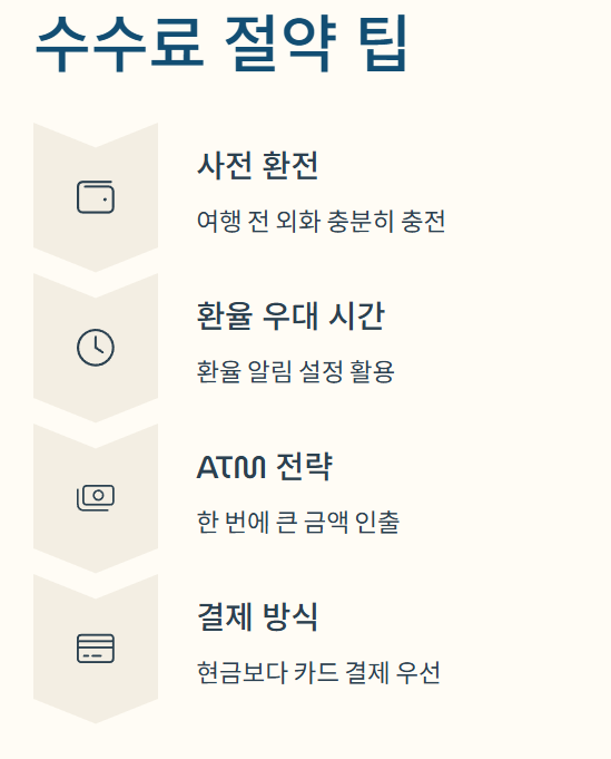 해외에서 카드를 사용할 때 가장 신경 써야 할 요소 중 하나가 바로 수수료입니다. 수수료 구조를 정확히 알고 활용하면 해외 결제 비용을 크게 줄일 수 있습니다.